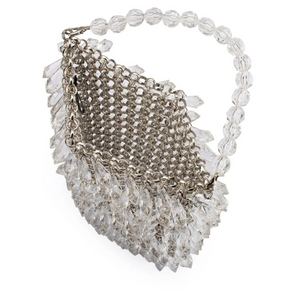 The FLORENCE Chainmail and crystal top handle bag is a showstopping evening bag. Turn heads with this sparkling slouch style chainmail bag, which features all-over shimmering crystals. Easily fits a large smart phone and includes a shoulder chain as well as a matching crystal handle for versatile styling options.