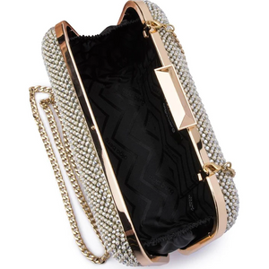 Vintage chic at it's most glamourous, the Klara Pearl and Crystal Mesh Clutch is the perfect event clutch and the ideal choice for a modern bride. Featuring a sleek rounded body covered in pearl and crystal mesh, large enough to fit all of your essentials, including a smart phone.