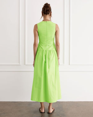 Crafted from 100% crisp Cotton Poplin, the Kimberly Maxi Dress in Verde is a celebration of summer romance. A pallet inspired by the juicy green hues of an orchard, featuring a corset-style bodice and structured front panelling that sculpts the waist. The cascading maxi skirt brings softness and femininity. Made to be worn through the golden months of the year.
