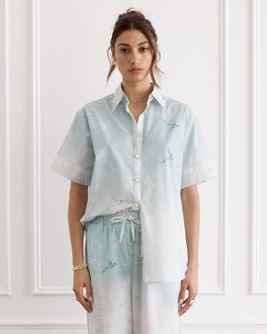 Breezy and bold, the Bianca Cuban Shirt is a sunlit statement in 100% crisp Cotton Poplin. Its oversized fit and drop-shoulder sleeves invite ease, while the button-through front allows for endless styling options. A modern take on a classic cut, made for soft, slow days.