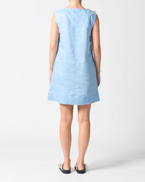 The Malta Mini is your go-to for effortless summer styling. Cut in a fresh sky blue linen blend, this sleeveless shift features a clean, A-line silhouette with modern side splits and a bow detail at the shoulder for a subtle touch of charm. Lightweight, breathable, and endlessly versatile—just throw on and go.