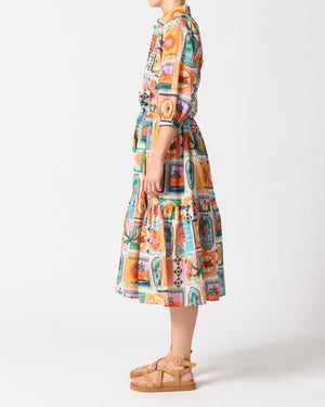 Introducing the Tuscany Dress in our vibrant Spicy Summer print. With its tiered midi silhouette and playful puff sleeves, this style is all about easy movement and standout charm. Designed with a collared neckline, button front, and a removable waist tie for added shape, it blends casual comfort with a polished edge. Made from crisp cotton poplin, it’s a breathable go-to for sunny days, spontaneous outings, and everything in between.