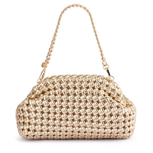 The EVERLY Hand Woven Clutch features a beautiful textural finish that is sure to elevate any look. With its roomy interior, this bag is perfect for transitioning from day to night or beach to bar while making a statement wherever you go. This versatile clutch includes a removable shoulder chain for when you need to go hands free and a shorter chain handle for an alternative styling option.